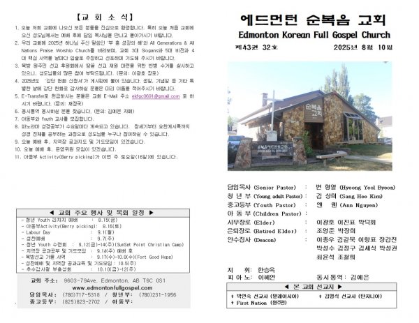 날짜: 2025.08.31 글쓴이 : 장갑진 | 주보보기