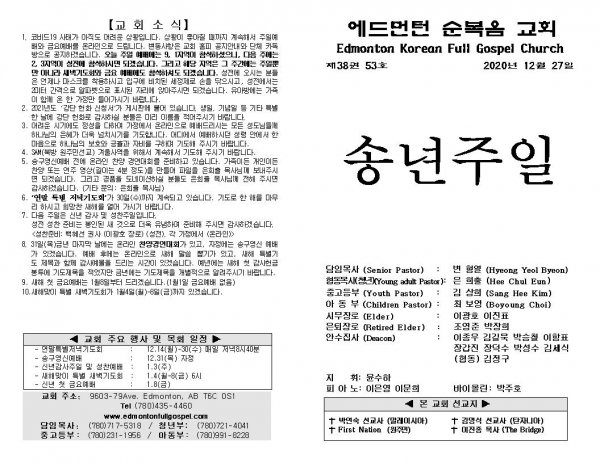 날짜: 2020.12.27 글쓴이 : 장갑진 | Sermon Summary