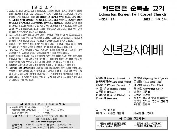 날짜: 2021.01.01 글쓴이 : 장갑진 | Sermon Summary