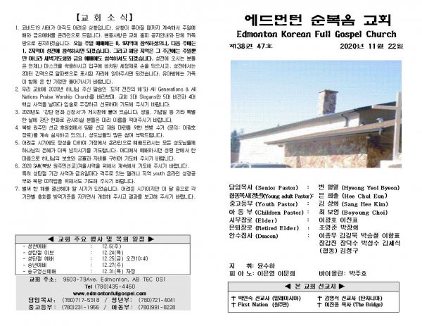 날짜: 2020.11.22 글쓴이 : 장갑진 | Sermon Summary