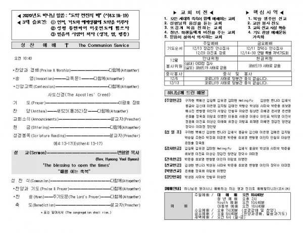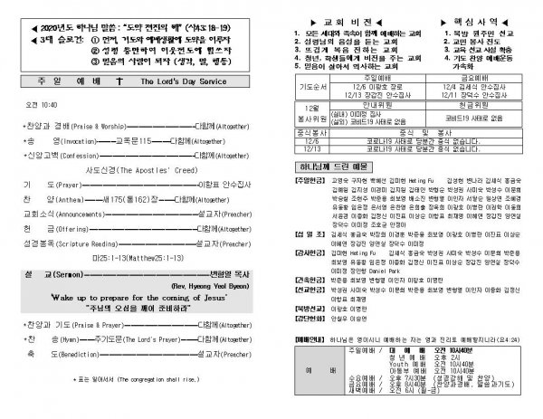 날짜: 2020.11.29 글쓴이 : 장갑진 | Sermon Summary