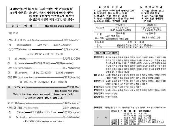 날짜: 2020.11.02 글쓴이 : 장갑진 | Sermon Summary