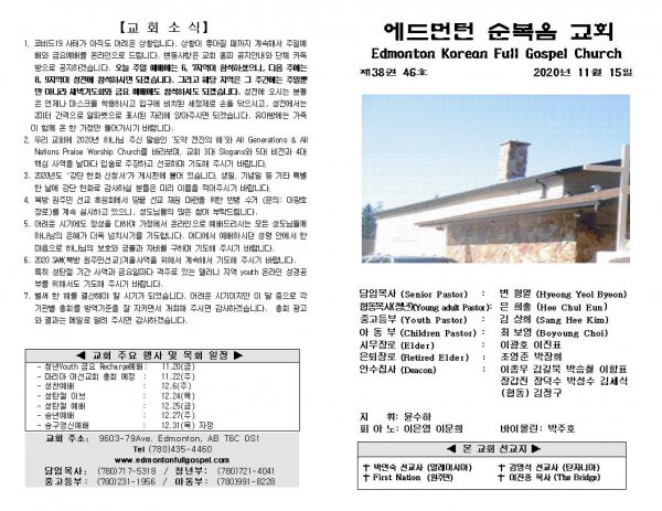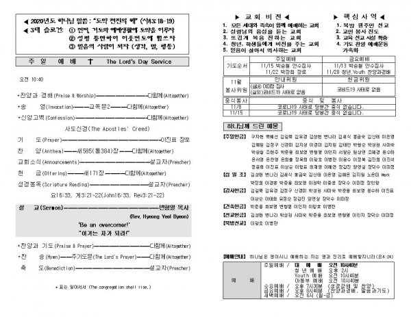 날짜: 2020.11.08 글쓴이 : 장갑진 | Sermon Summary