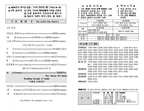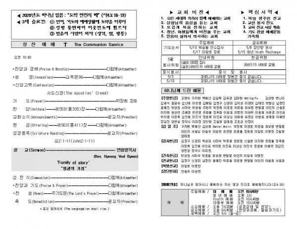 날짜: 2020.05.10 글쓴이 : 장갑진 | Sermon Summary