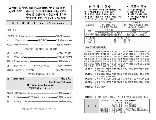 날짜: 2020.02.23 글쓴이 : 장갑진 | Sermon Summary