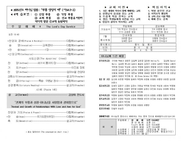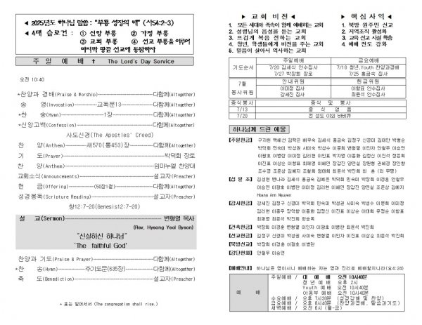 날짜: 2025.07.06 글쓴이 : 장갑진 | Sermon Summary