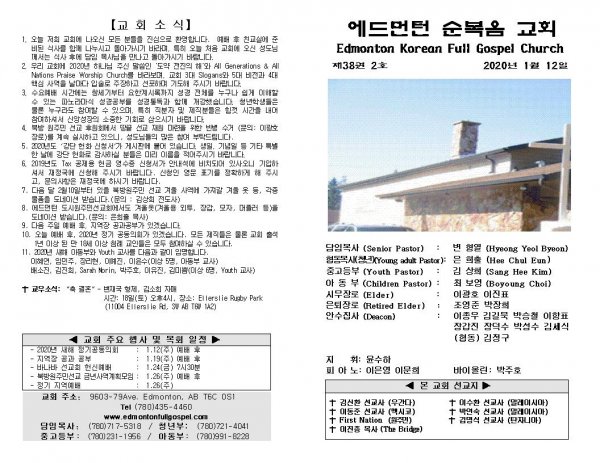 날짜: 2020.01.12 글쓴이 : 장갑진 | Sermon Summary