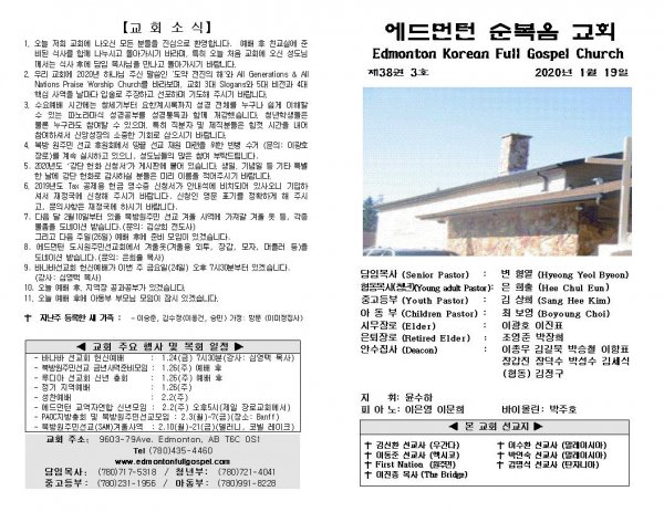 날짜: 2020.01.19 글쓴이 : 장갑진 | Sermon Summary