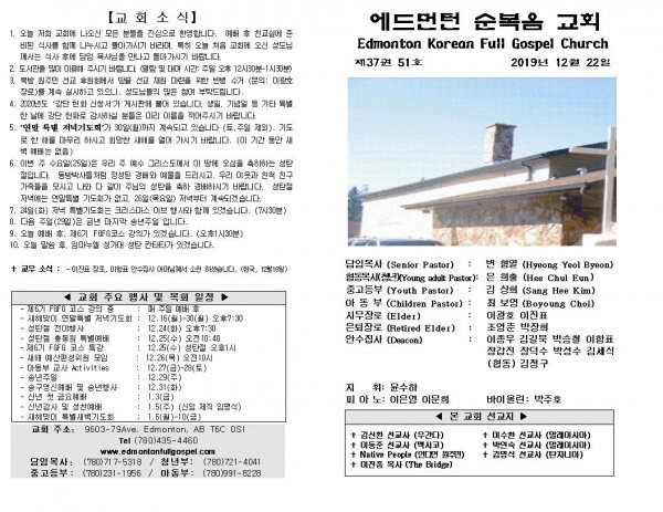 날짜: 2019.12.29 글쓴이 : 장갑진 | Sermon Summary