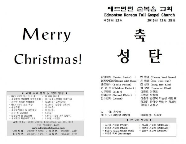2019년 12월 25일 성탄절 주보