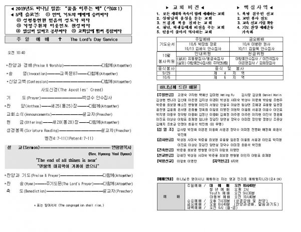 날짜: 2019.09.29 글쓴이 : 장갑진 | Sermon Summary