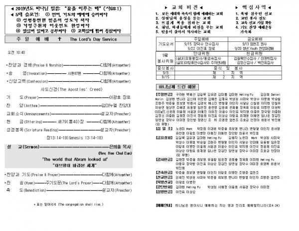 날짜: 2019.09.08 글쓴이 : 장갑진 | Sermon Summary