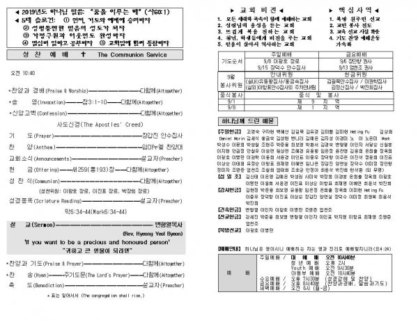 날짜: 2019.09.01 글쓴이 : 장갑진 | Sermon Summary