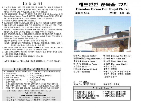 날짜: 2019.08.04 글쓴이 : 장갑진 | Sermon Summary
