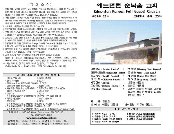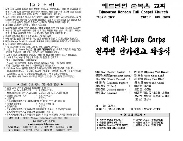 날짜: 2019.06.30 글쓴이 : 장갑진 | Sermon Summary
