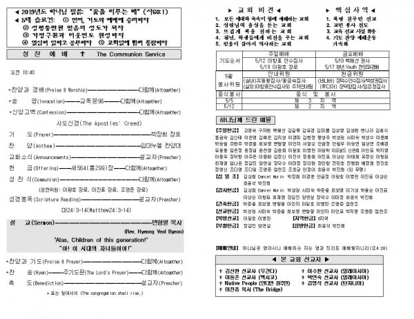 날짜: 2019.05.05 글쓴이 : 장갑진 | Sermon Summary