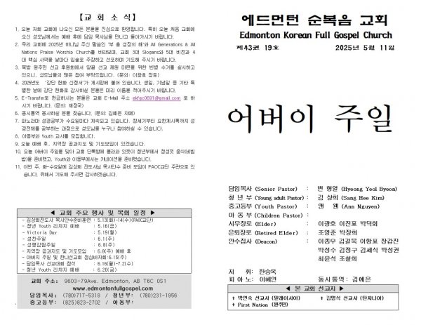 날짜: 2025.05.11 글쓴이 : 장갑진 | Sermon Summary