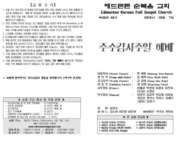 날짜: 2018.10.07 글쓴이 : 장갑진 | 주보보기