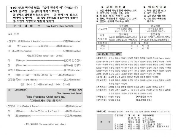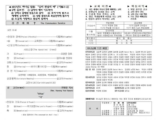 날짜: 2017.11.01 글쓴이 : 장갑진 | Sermon Summary