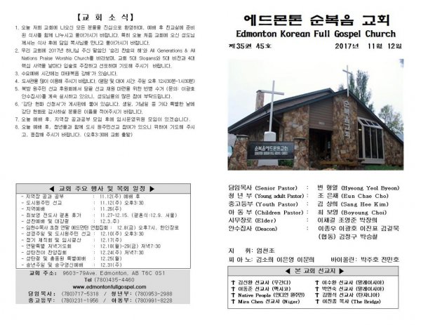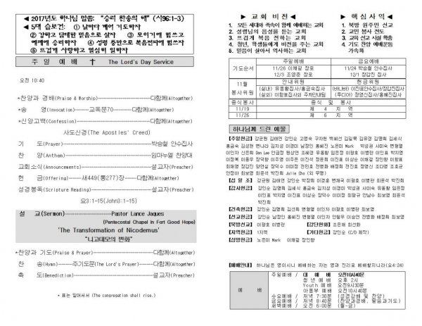 날짜: 2017.11.19 글쓴이 : 장갑진 | Sermon Summary
