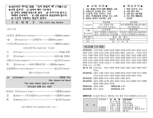 날짜: 2017.09.28 글쓴이 : 장갑진 | Sermon Summary