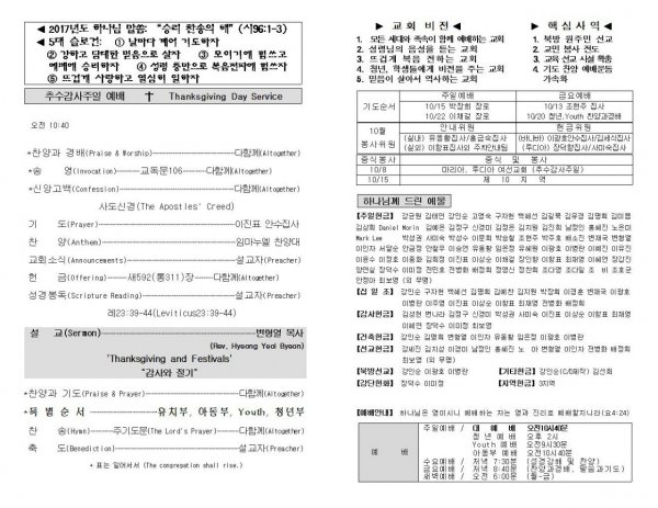 10월 8일 주보(추수감사주일)