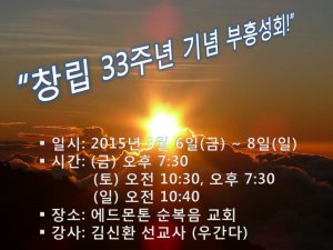 "창립 33주년 기념 김신환 선교사 초청 부흥성회"