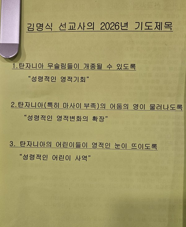 날짜: 2026.02.15 글쓴이 : 장갑진 | 김명식 선교사 (탄자니아)
