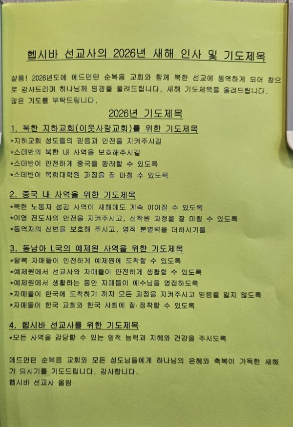날짜: 2026.02.01 글쓴이 : 장갑진 | 헵시바 선교사 (북한 탈북인)