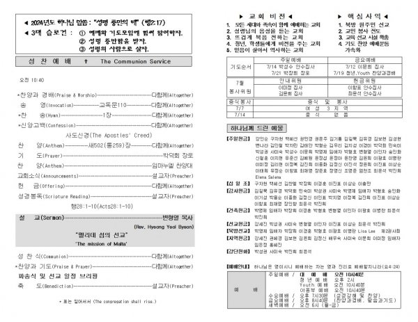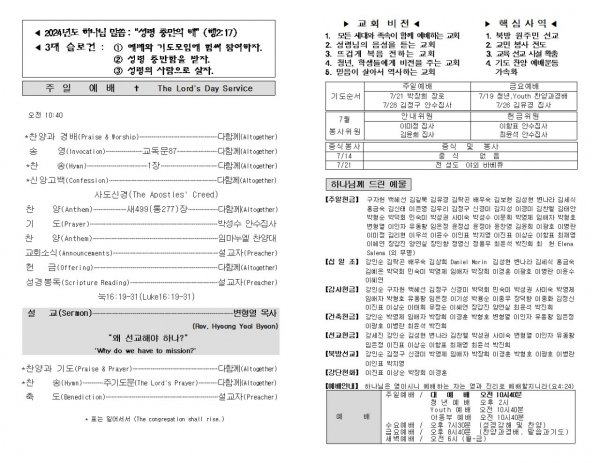 날짜: 2024.07.07 글쓴이 : 장갑진 | Sermon Summary