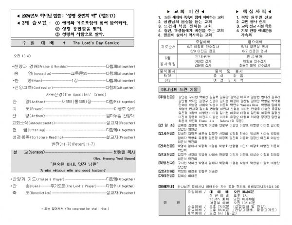 날짜: 2024.05.26 글쓴이 : 장갑진 | Sermon Summary