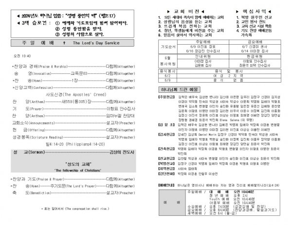 날짜: 2024.06.02 글쓴이 : 장갑진 | Sermon Summary
