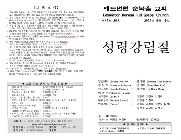 2024년 05월 19일 주보 - 성령강림절