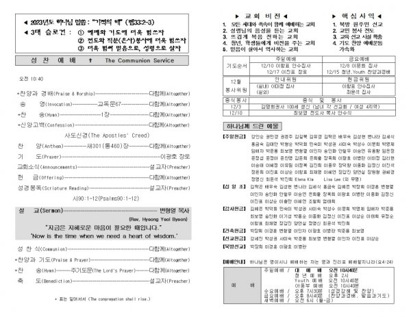 날짜: 2023.12.03 글쓴이 : 장갑진 | Sermon Summary