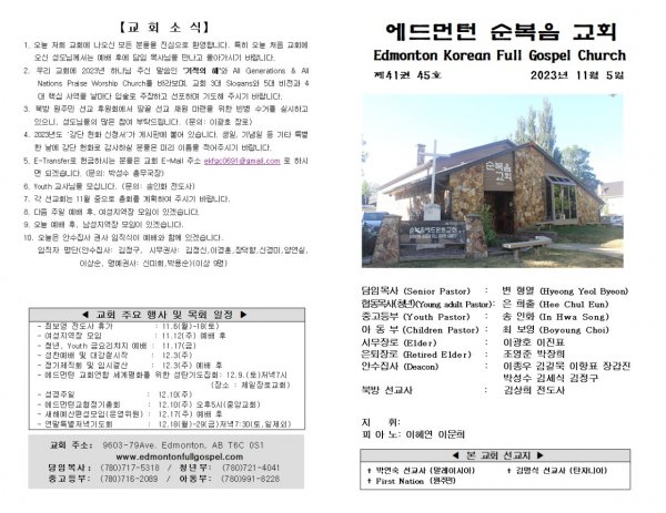 날짜: 2023.11.05 글쓴이 : 장갑진 | Sermon Summary