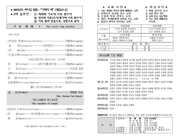 날짜: 2023.11.19 글쓴이 : 장갑진 | Sermon Summary