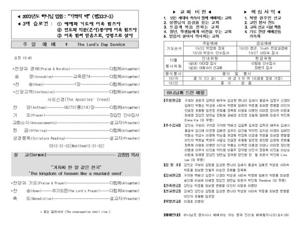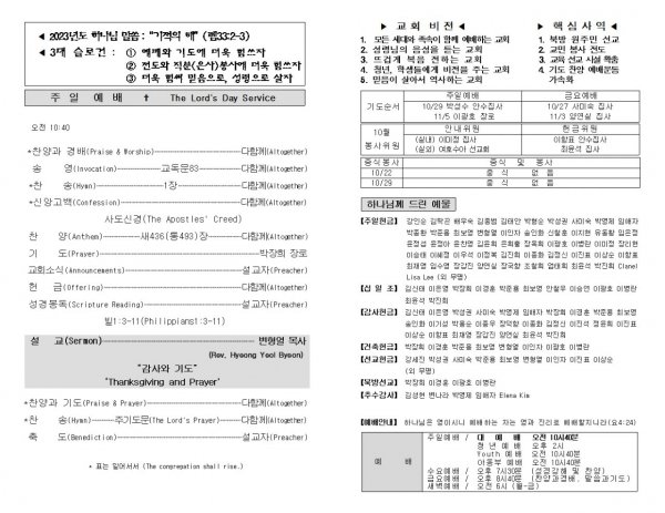 날짜: 2023.10.15 글쓴이 : 장갑진 | Sermon Summary