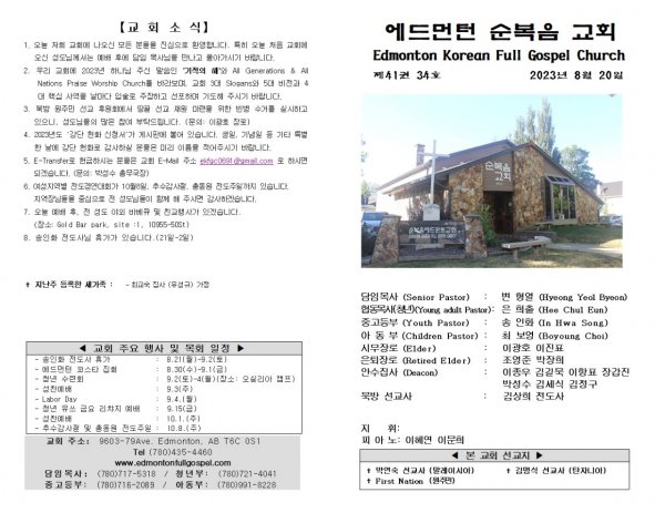 날짜: 2023.08.20 글쓴이 : 장갑진 | Sermon Summary