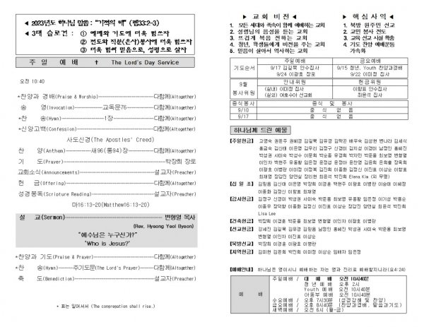 날짜: 2023.09.10 글쓴이 : 장갑진 | Sermon Summary