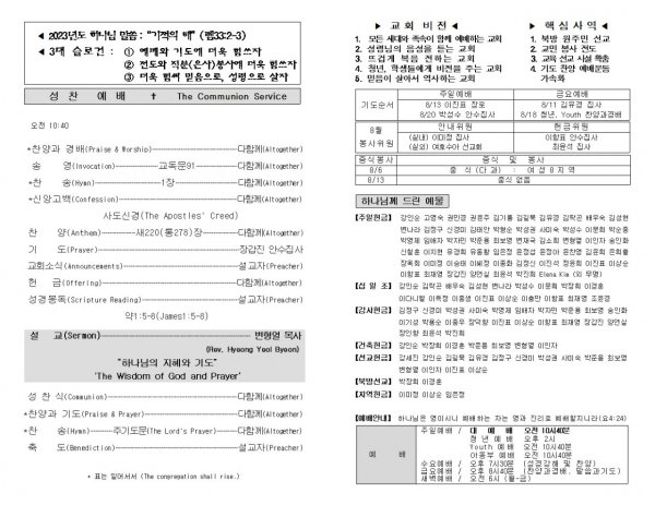 날짜: 2023.08.06 글쓴이 : 장갑진 | Sermon Summary