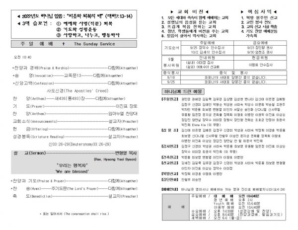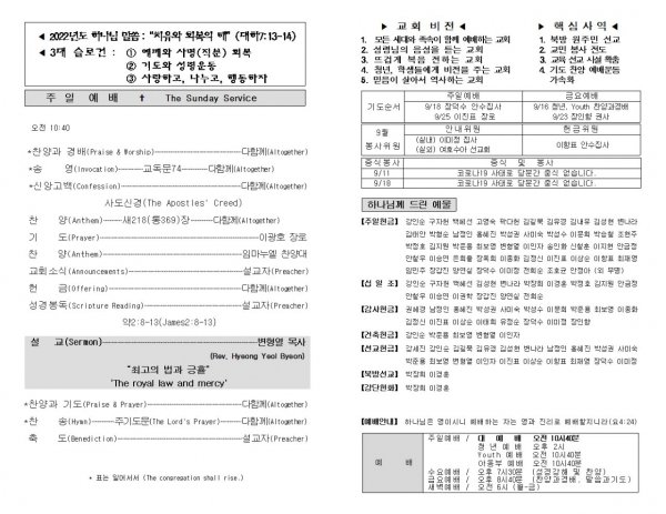 날짜: 2022.09.11 글쓴이 : 장갑진 | Sermon Summary
