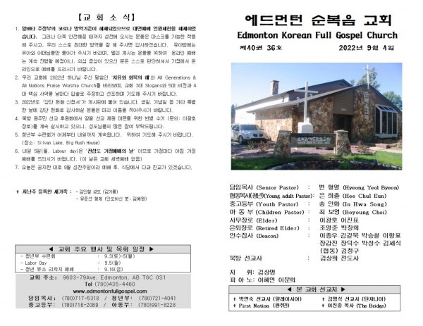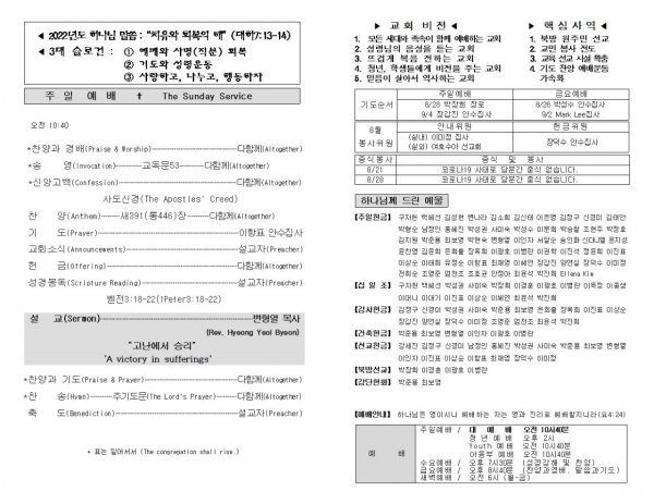 날짜: 2022.08.26 글쓴이 : 장갑진 | Sermon Summary
