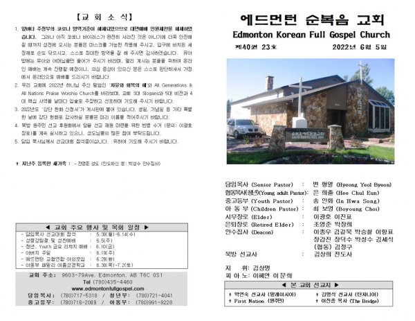 날짜: 2022.06.05 글쓴이 : 장갑진 | Sermon Summary