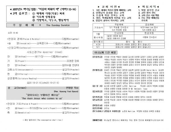 날짜: 2022.04.24 글쓴이 : 장갑진 | Sermon Summary