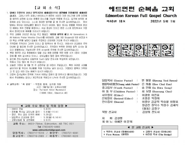 날짜: 2022.05.01 글쓴이 : 장갑진 | Sermon Summary