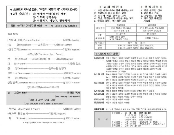 날짜: 2022.03.13 글쓴이 : 장갑진 | Sermon Summary