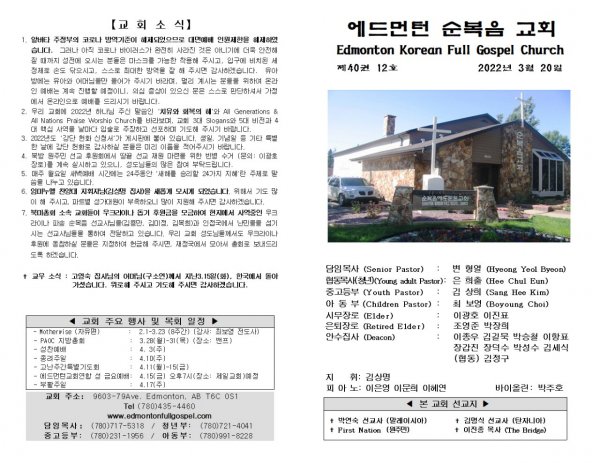 날짜: 2022.03.20 글쓴이 : 장갑진 | Sermon Summary