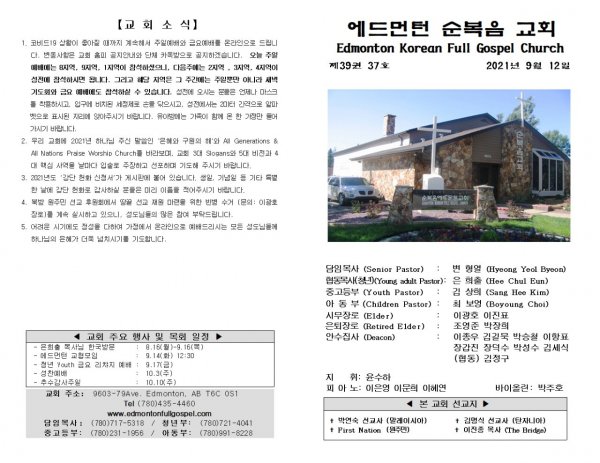 날짜: 2021.09.12 글쓴이 : 장갑진 | Sermon Summary