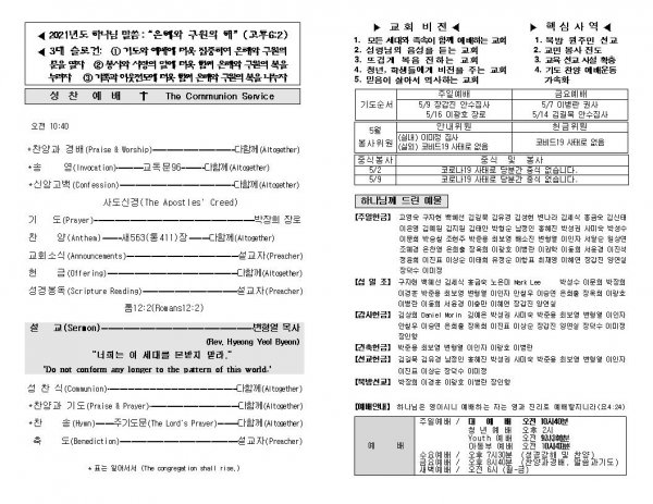 날짜: 2021.05.02 글쓴이 : 장갑진 | Sermon Summary