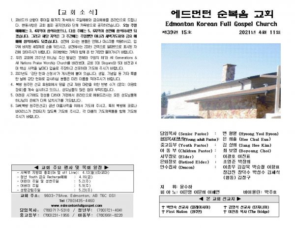 날짜: 2021.04.11 글쓴이 : 장갑진 | Sermon Summary